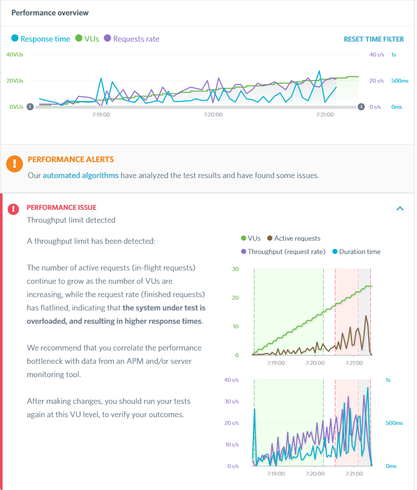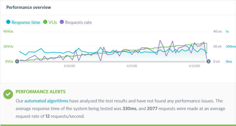 The test gradually sends traffic up to 25 visitors at once to see how the server handles the active request.