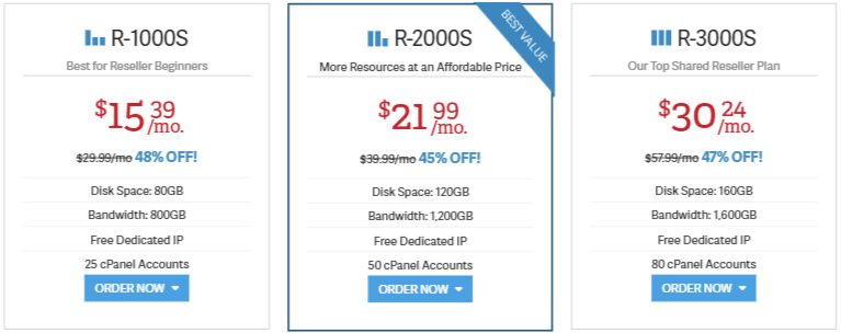 Most of the web companies offer you four plans to choose from but InMotion only gives you three option. This is because they don’t have a plan without WHMCS Key. Most companies provide a cheaper entry plan and ask you to purchase WHMCS License key for an additional price. Since all of InMotion plans comes with FREE WHMCS key, so they only have three plans to offer which is basically good enough. Among all the host that we have compared, InMotion Hosting has the cheapest price with additional disk spaces to offer. You can view Reseller Hosting Comparison table here.