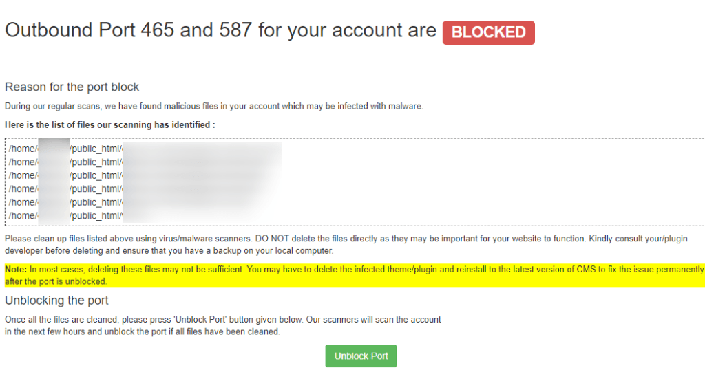 Another good feature in their cPanel is the virus scanner. It automatically scans for malware and takes automatics measures to secure your data. Once it detects malicious files, the system automatically blocks outbound port and change permission of the infected files so that they are no longer accessible. You will need to delete or fix the infected files before requesting to unblock the port.